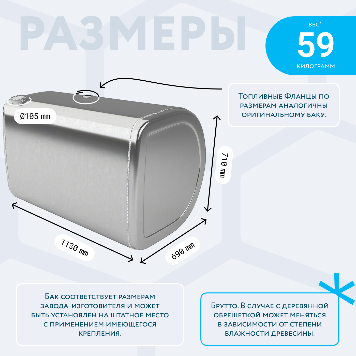 Наши алюминиевые баки изготовлены из алюминия АМг3 увеличенной толщины 2.5 мм. Однако мы можем изготовить топливный бак для вашего грузового авто из алюминия 3 мм под заказ. Обратите внимание! Заказная позиция требует увеличения стоимости и срока производства бака.